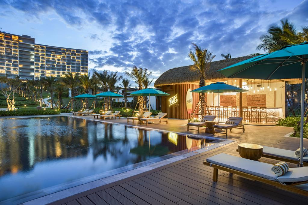 Bể bơi vô cực ấn tượng với quầy bar dưới nước – Nơi du khách vừa có thể thả mình trong làn nước xanh mát vừa nhâm nhi những ly cocktail hảo hạng đầy thư giãn. Những bữa tiệc pool party với âm nhạc sôi động, những vũ điệu bốc lửa, những buổi biểu diễn DJ hứa hẹn sẽ lôi kéo bước chân các du khách.