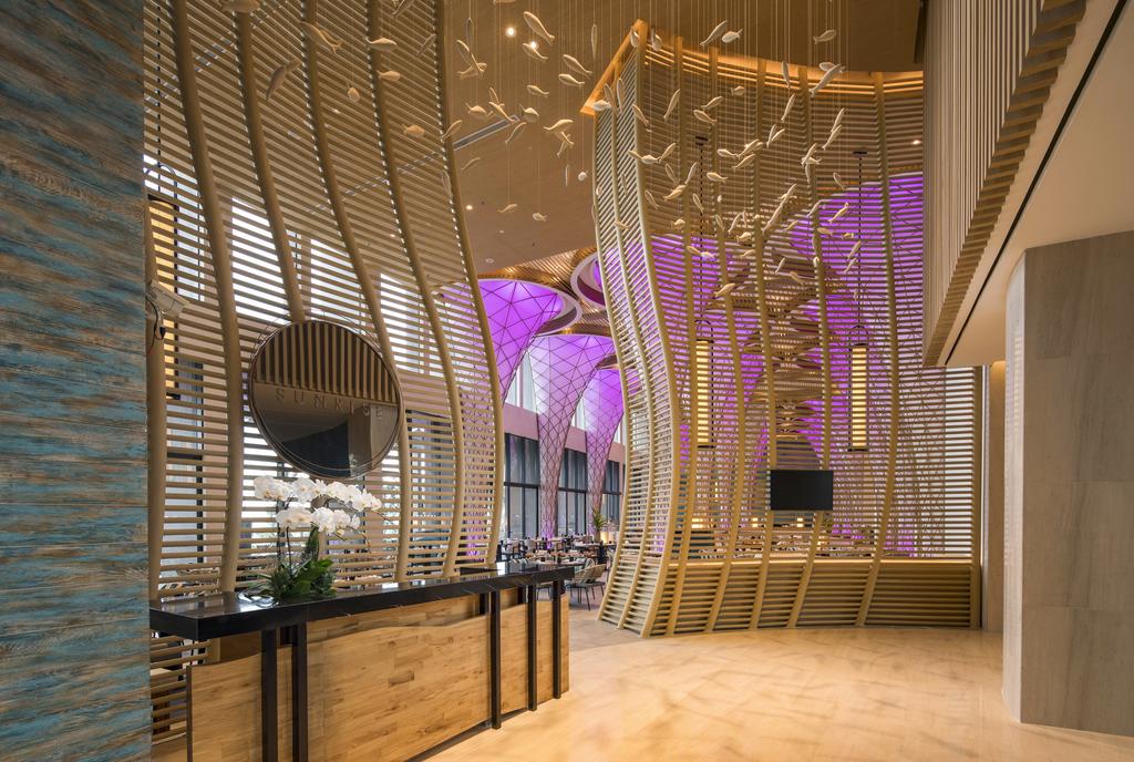 Bước vào nhà hàng Sunrise – All day daily là một thế giới khác hẳn, du khách đươc phục vụ cả ẩm thực bản địa lẫn các món ăn quốc tế đặc sắc trong không gian bài trí đầy tinh tế, ấn tượng với những cột lưới cách điệu lung linh dưới ánh đèn đa sắc.
